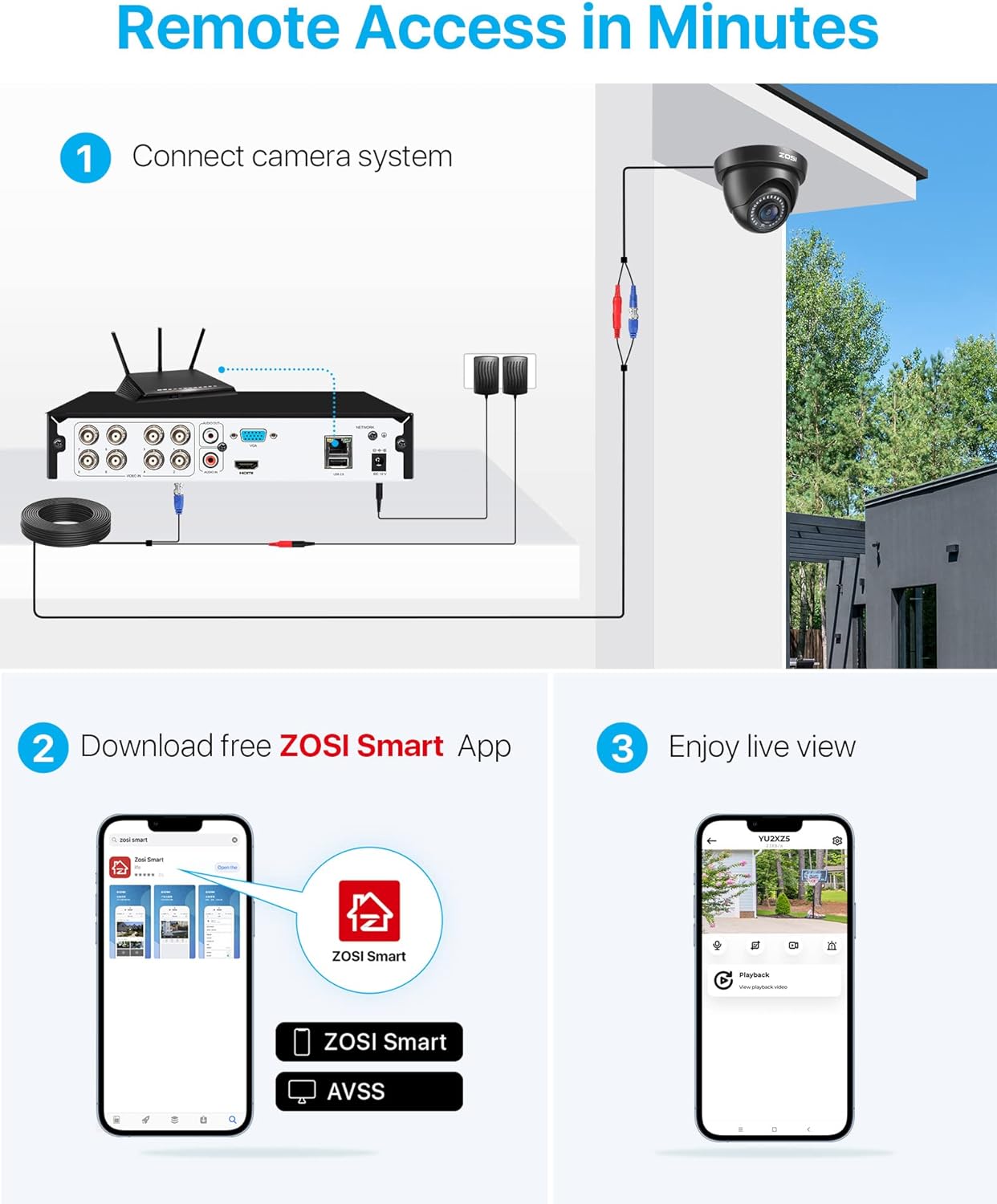 • Installation Simplifiée : Le système est facile à installer, avec un guide étape par étape pour vous aider à mettre en place votre surveillance en peu de temps.
